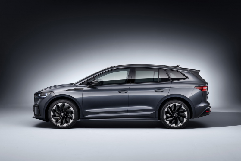 ŠKODA ENYAQ iV ponúka veľmi dobré jazdné vlastnosti a dynamiku vďaka vysokému maximálnemu krútiacemu momentu, ktorý je vďaka elektromotoru dostupný ihneď po zošliapnutí plynového pedálu a pohonu zadných kolies alebo pohonu všetkých kolies. Výborné jazdné vlastnosti sa plne prejavujú vo verzii SPORTLINE aj vďaka štandardne dodávanému športovému podvozku. Predná náprava je znížená o 15 mm, zadná náprava o 10 mm. Maximálna rýchlosť činí pri všetkých troch variantoch motorov 160 km/h. Športový vzhľad vozidla ENYAQ SPORTLINE iV zvýrazňujú kvalitné dizajnové prvky karosérie aj interiéru. Rovnako ako ENYAQ iV sa bude verzia SPORTLINE vyrábať v hlavnom výrobnom závode v Mladej Boleslavi. Ide o jediné vozidlo na báze platformy MEB koncernu Volkswagen, ktorý sa v Európe nevyrába v Nemecku.